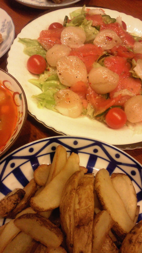お好み焼き屋で食べたサラダ (`・∀・)うまーーーーい 明日はクリスマスでもうす。 ちなみに終了式も明日です!!わーい 期末で赤はなかったんですが、 生物の先生に呼び出されたときは 「∑(-ω-;)・・・・ま、まさか・・・・・やっちまったか・・・!?」 心臓が破裂tfgyふじこlくぁ でも別の呼び出しでした、よかったです(;^ω^)=3