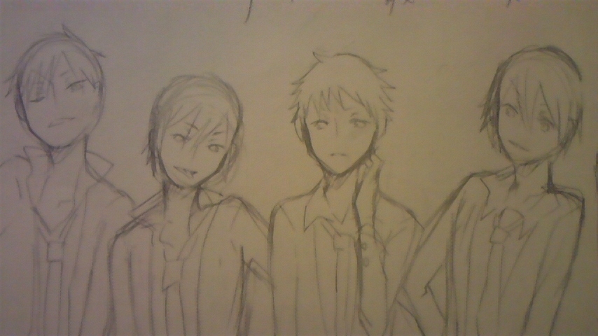 右から、臨也、青葉、帝人くん、紀田くんですね!