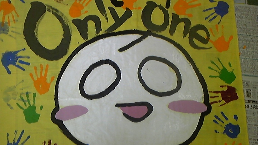 うちのクラスの応援旗!真ん中の生物は、うちのクラスのマスコットキャラクター、キャサリン!!