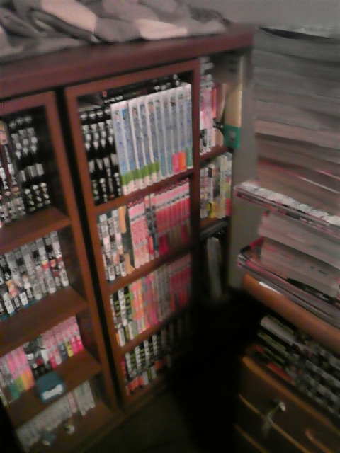 これはひどいw 最近、漫画が多くなりすぎて、本棚に入りきらなくなってきました…汗 恐ろしいッ…! 一体何冊あるんでしょう…。 ちなみにこの他にもういっこ黒い本棚とさちの本棚がありますが溢れています…。