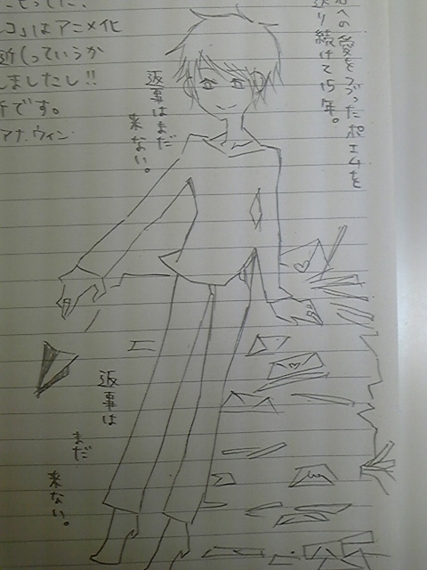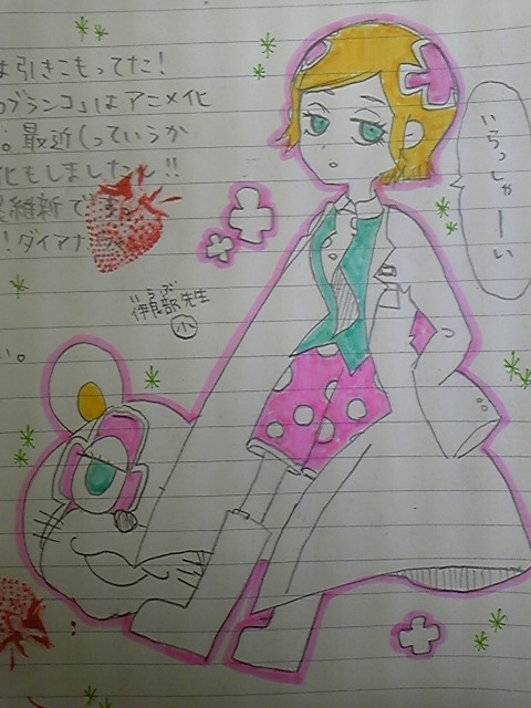 「Dr.伊良部一郎」ドラマ化おめでとーございます! つーわけで、落書き。アニメ「空中ブランコ」の伊良部先生(小)です。 この先生独特の「いらっしゃぁ~い」の声が好きですw 軽く犬塚さん2週間放置してましたね!!まだ生きてますよ!しぶとく! この2週間は魔の2週間でして、体調は悪化するわ、泣くわ、進級試験があるわ…ブログどころじゃありませんでしたわ奥様…。すいません…。でもツイッターでは結構呟いてます!!! そのツイッターで回ってきたんですが、 「い.ざ.や.さ.ん.の.15.年.ネ.チ.ネ.チ」という動画がもう半端なくて!!!! 泣くどころじゃないですよ号泣で思い出し泣きしちゃいましたよ!!!!!もともと涙腺は弱い方ですが、臨帝を愛してるなら涙なしでは見られないですぞ! これ→http://www.nicovideo.jp/watch/sm13298631 是非見てみてください。 おまけ 落書きにも程がある。 28日はシズちゃんの誕生日だったり、ヒロCの誕生日だったり、、、わーーーーおめでとおおおおおお!!! 祝えなくてごめんねえええええ29日が試験だったからさぁぁぁぁぁ!!!! と言い訳しとく!! 試験終わりに「青の祓魔師」のアニメ化おめでと絵とか、後11日が祖国様のお誕生日だからそこらへん絵が描きたいと思ってるんですが、、、、 パソコンやりたくないテレビ見たくない病が最近再発しまして。やっとのことでこの記事も書いてる始末です・・・。 青帝も頭ん中で漫画1本出来てんですが…描けないずぇ…orz とりあえず落書きしながら回復を謀りますです…。