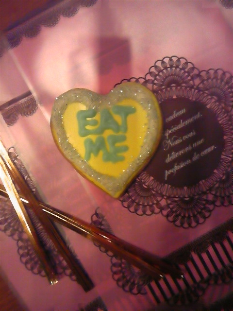 二週間近くほっときっぱなしで実に恐れ入りますすみません犬塚ですよー!ばんわー! 今年もバレンタインがやってきました!!この日にどれくらいの男子が本命を頂くんでしょうか?女子会でチョコ頂くんでしょうか?友チョコも良いですよね!テニプリのキャラにどれくらいチョコ送った女子がいるんでしょうか!?今年も跡部様がキングなのかーーーー!!??個人的には謙也さんとかに送りたいが…えふんおふん。 私も一応作りますよ~!と言っても買ってきたクッキー(色つき)にチョコペンとかでデコるだけですが…手抜きでごめんね…でもこの色がアメリカーんなクッキーとチョコペン、けっこーいいお値段してるんですよ、はい。 今回はアリスっぽく毒々しい色で(後ラメが入ってる砂糖)「EAT ME」と書いてデコってみました! 赤のクッキー誤って「EAT」しか入らなかった…ごめん…。 ラッピング~。 ココスで10~14日限定のバレンタインマッドパイ!半額券を貰ったので、おばあちゃんとさちと犬塚で昨日食べて来ました!!でかい…かな~りでかいですよ…。アイスが計4つ!こんもり、です。さちと半分こして頂きました!ごちです。 そして~ 今日学校行って来たら、なんと! こんなに頂いてしまいました!!!!!計7つ! カバンの中が宝石箱です(キラキラ) 中には嬉しいメッセージつきのもあったりなんかして…!もう!泣くぞコラァ!←? うん。ネタとか絵とかちょっと忙しくて出来なかったけど… ハッピーバレンタイーン!! ちなみに犬塚の地元では天気予報で夜に小雨とか言ってたので朝、傘いらないな~で学校行ったら雪が吹雪いてやんの!!ホワイトバレンタイーン!!傘もってねぇぇぇえぇぇぇええええ!!!!